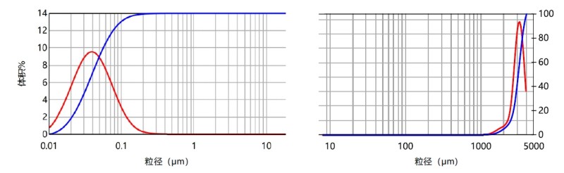 ● 从10nm (D50值40nm)到4000μm(D50值3000μm),一镜到底,准确测量